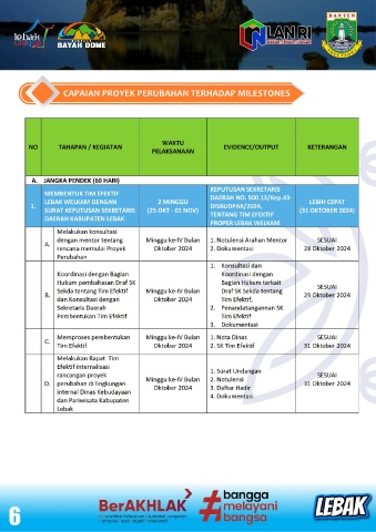 CAPAIAN PROYEK PERUBAHAN TERHADAP MILESTONES 6