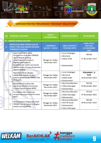 CAPAIAN PROYEK PERUBAHAN TERHADAP MILESTONES 9